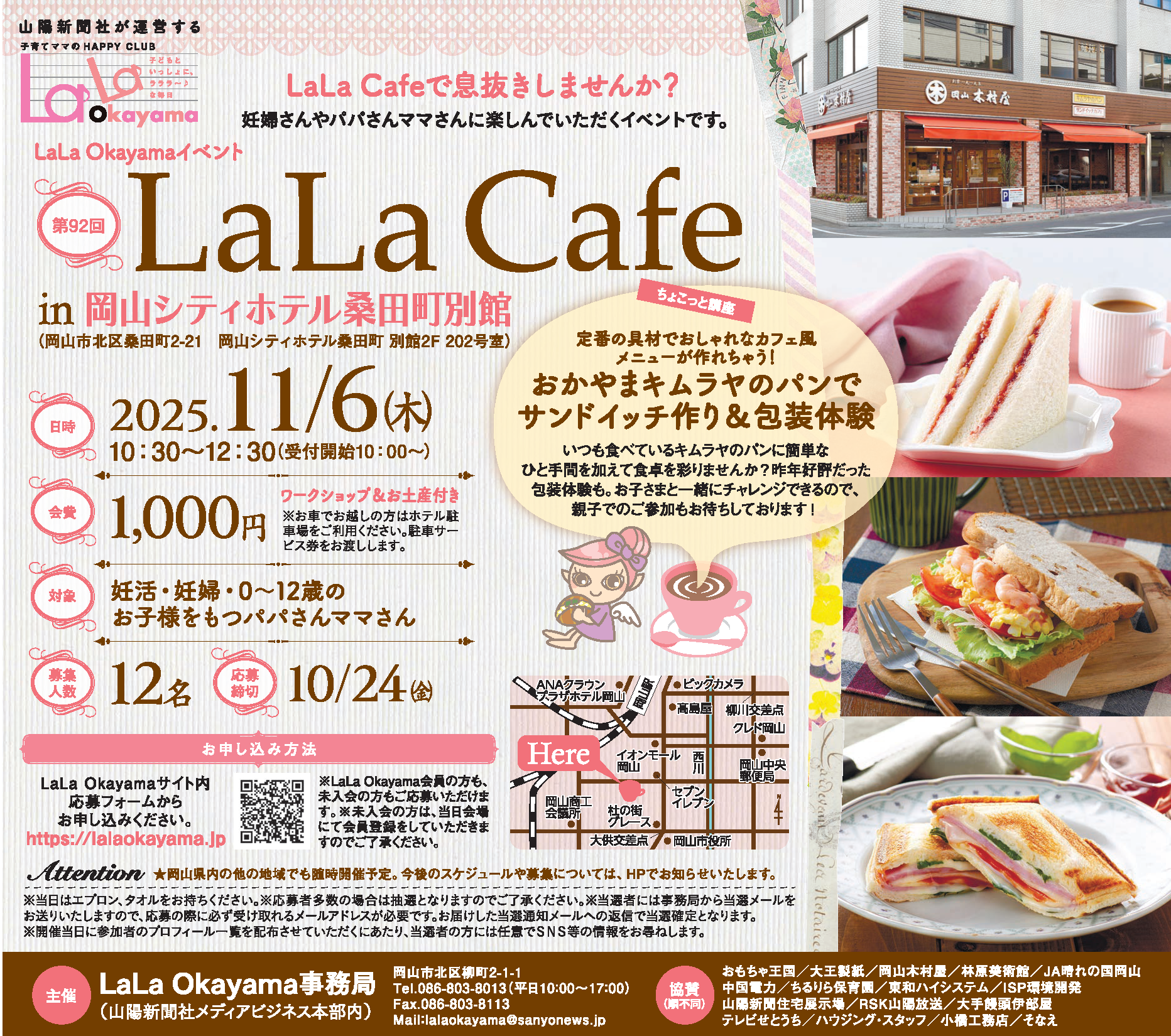 山陽新聞社と「LaLa Okayama実行委員会」が運営する子育てママを応援するみんなで創る子育てCLUB。ママにも運営に携わってもらう、自由度の高い参加型の組織です。