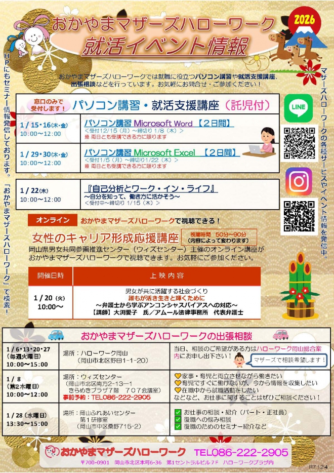開催中【おかやまマザーズハローワーク】1月就活イベント情報!!