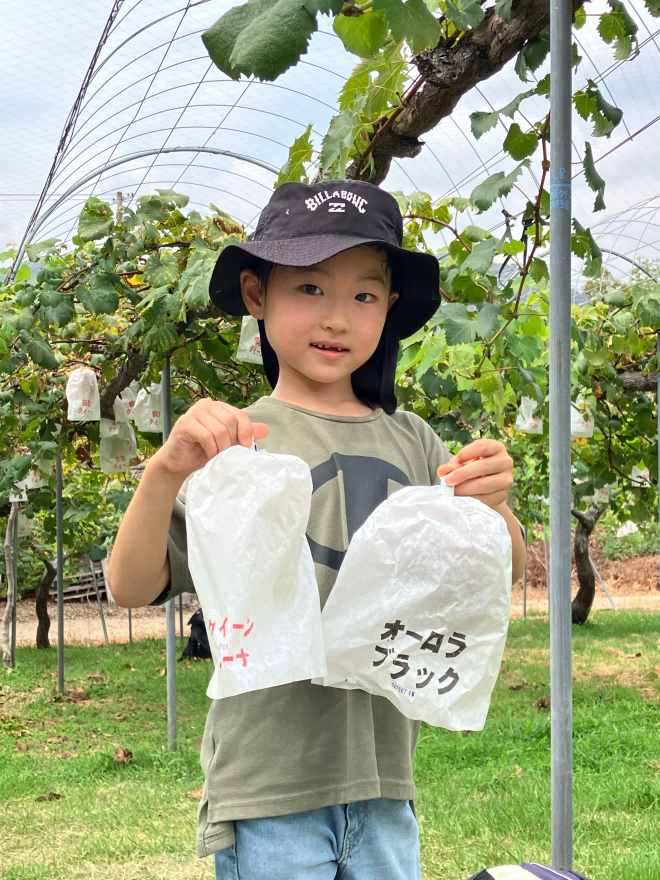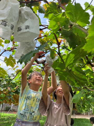ぶどうを手にした子どもたちの笑顔が、キラキラと輝いていました。
