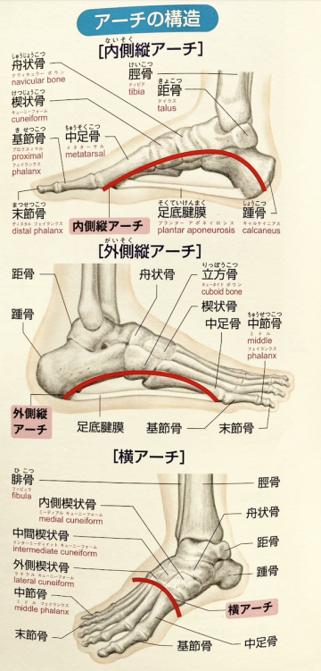 専門的には横のアーチが2つ加わり5つとなるのですが、この「アーチ」が本当は一番大切なのです。