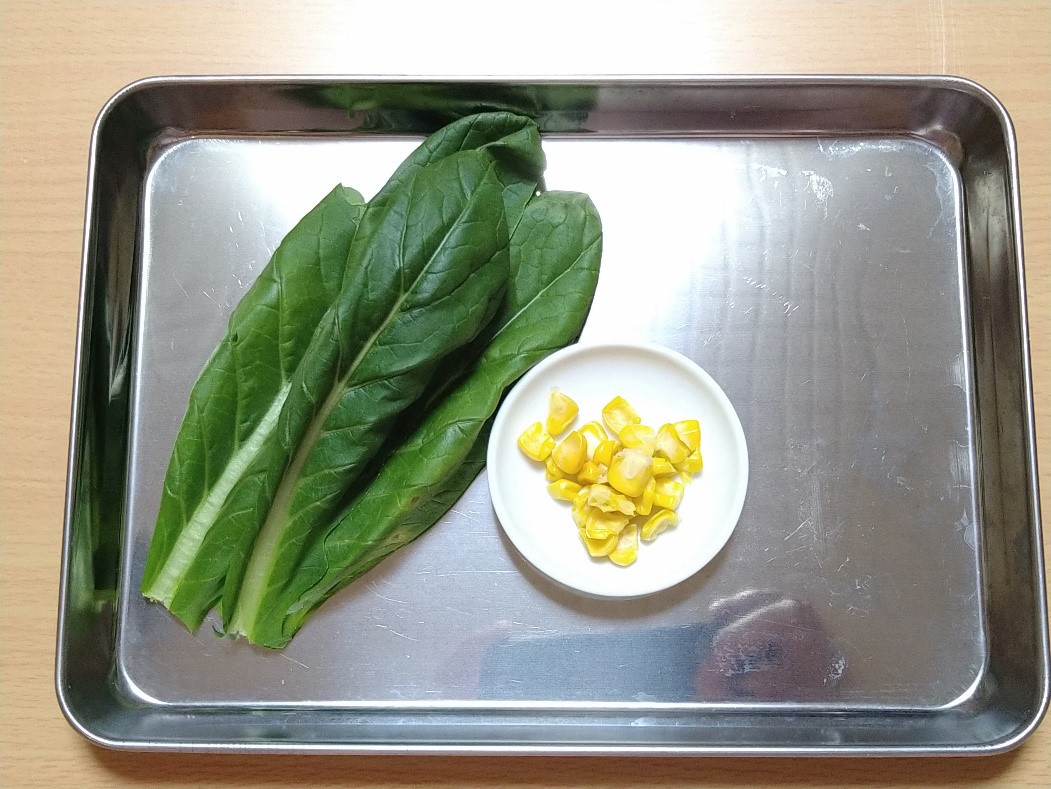 トウモロコシの甘みで緑黄色野菜が食べやすくなります。小松菜のほかホウレンソウやチンゲン菜、ブロッコリーなどもアレンジしてお試しくださいね。