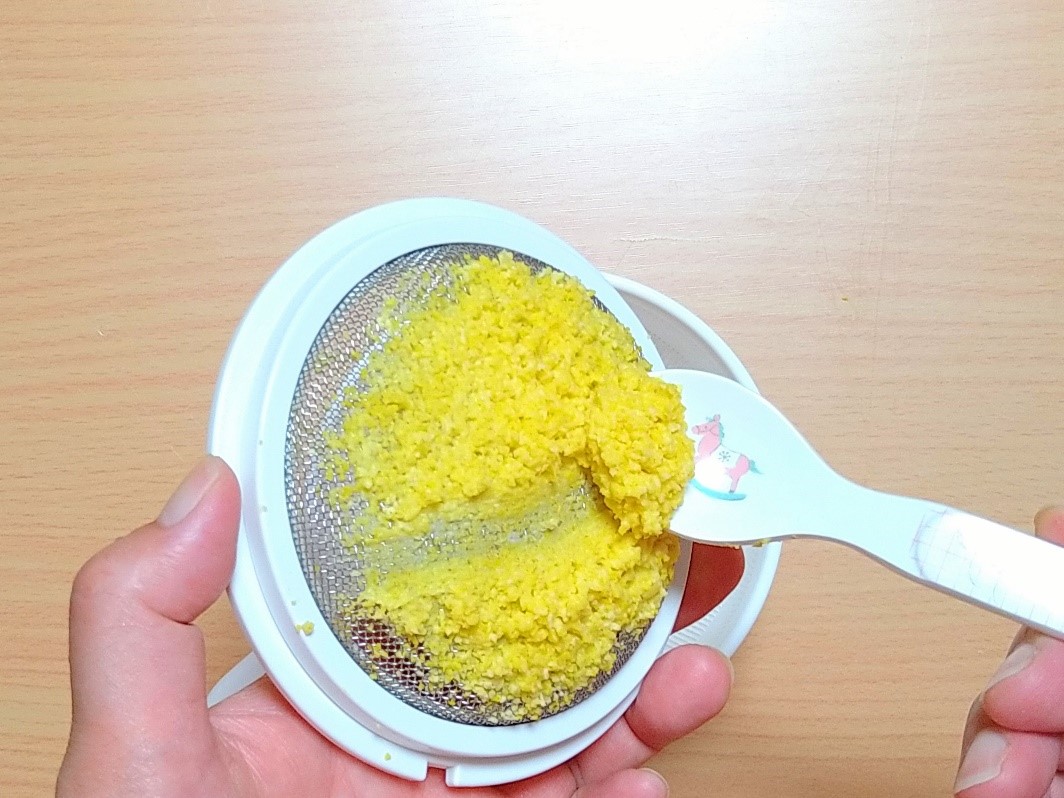 ①トウモロコシは下処理のステップの通り裏ごしする