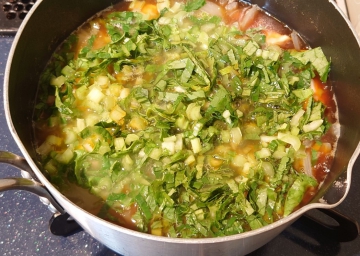⑦全体が柔らかく煮えたら小松菜を加える。