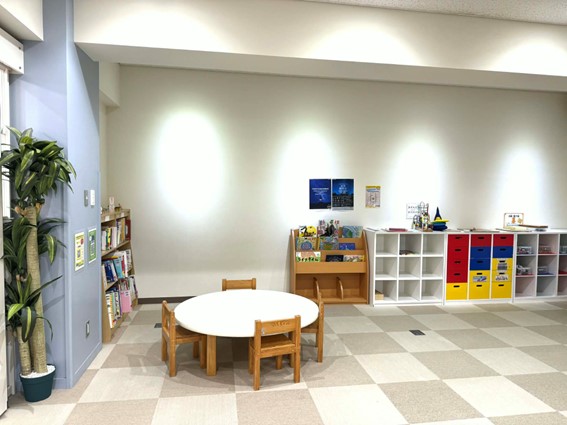 知育玩具や絵本などがそろっており、小さな子どもでも遊びやすい空間。