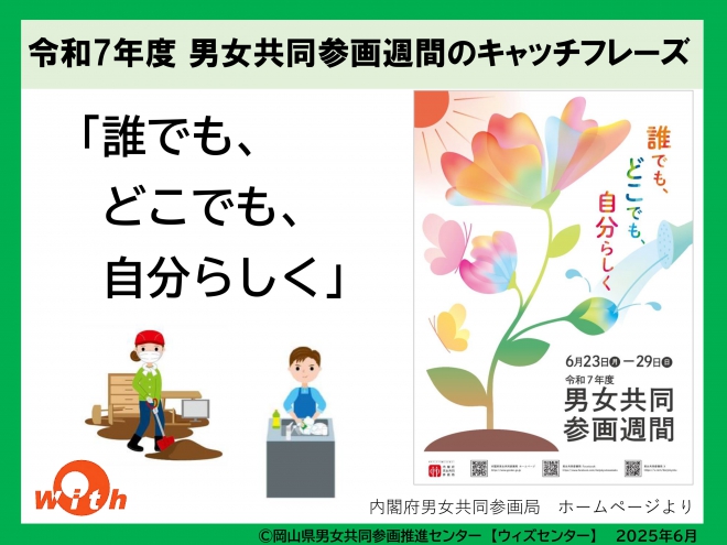 毎年6月23~29日までの一週間は、国の「男女共同参画週間」です。