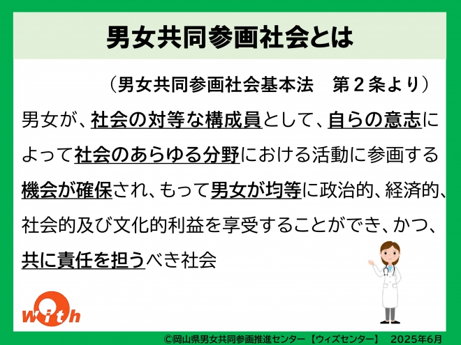 そんなウィズセンターの公式YouTube「サクッ!とシリーズ!」と連携し、男女共同参画社会について“サクッ!と”ご紹介します