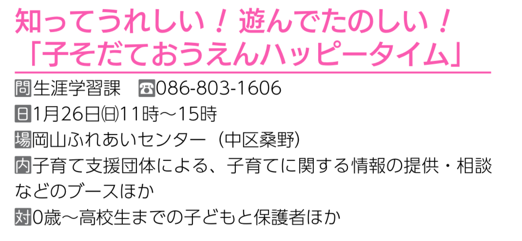 【知ってうれしい!遊んでたのしい!「子そだておうえんハッピータイム」】