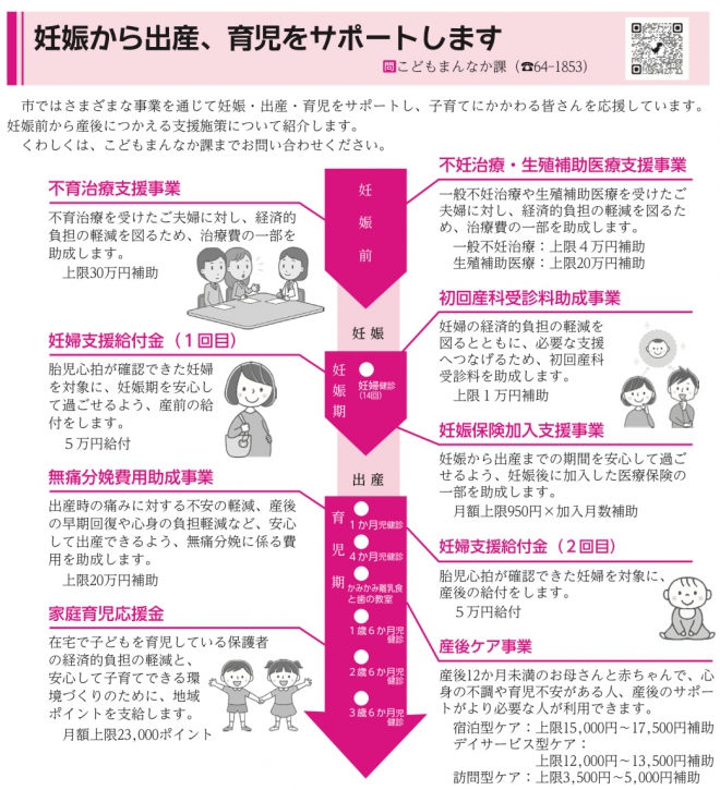 市ではさまざまな事業を通じて妊娠・出産・育児をサポートし、子育てにかかわる皆さんを応援しています。