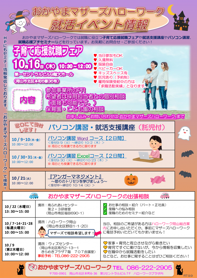 【おかやまマザーズハローワーク】10月就活イベント情報!!